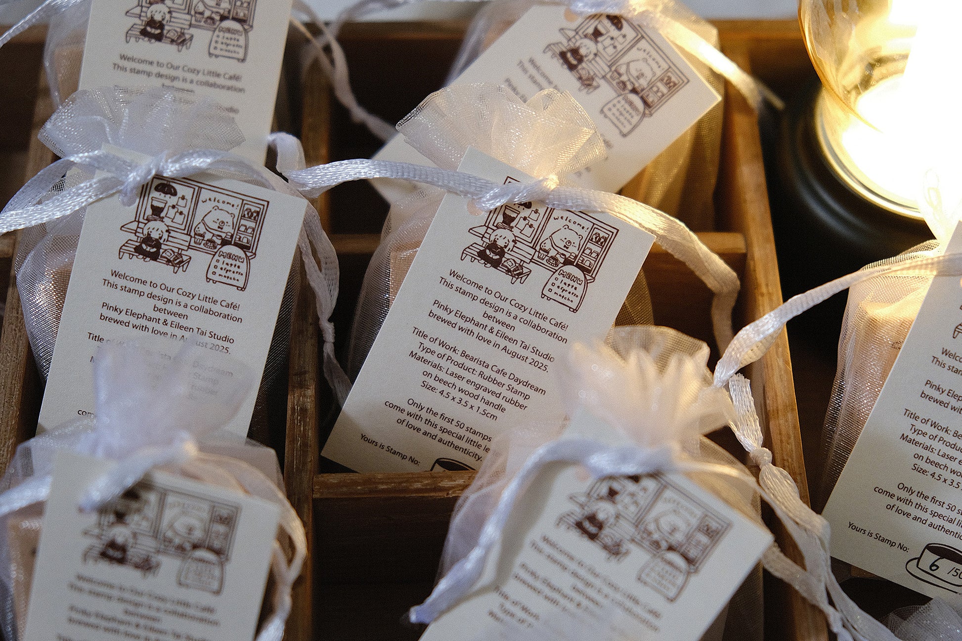 Welcome to our cozy little cafe! This stamp design is a sweet collaboration between Pinky Elephant and Eileen Tai Studio, brewed with love in August 2025.