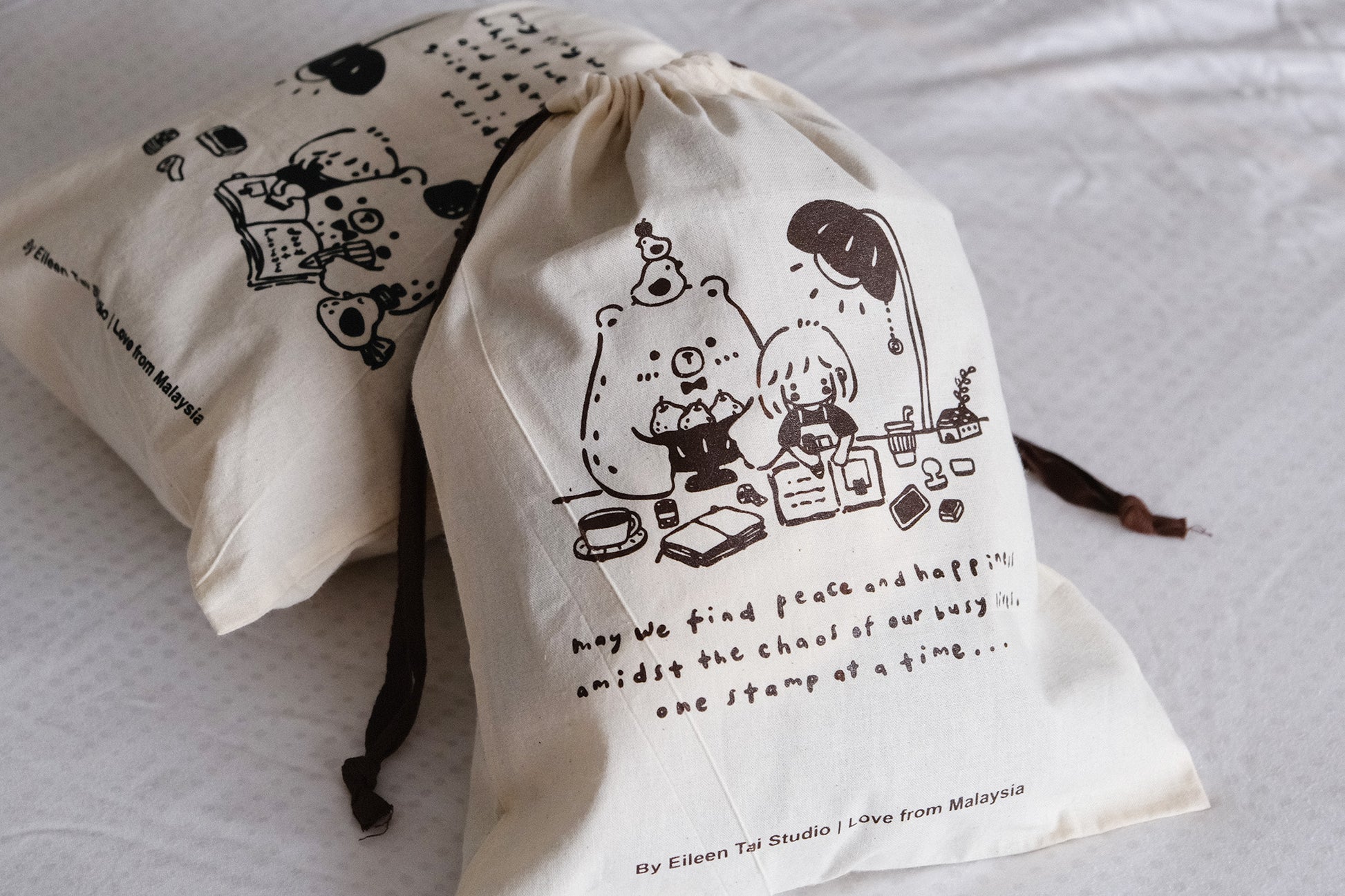 Drawstring Pouch: One Stamp at A Time (Brown)